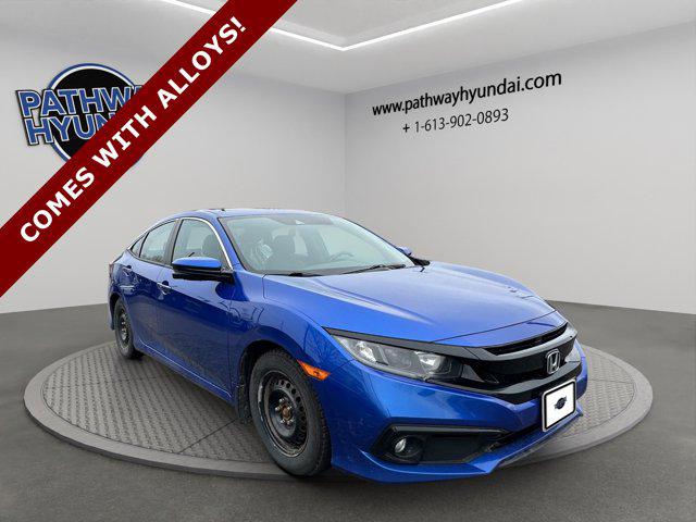 Is fuel efficiency at the top of your list? Meet the 2019 Honda Civic Sedan Sport, a sleek powerhouse renowned for its economic fuel consumption housed in a sporty design. Whether you're commuting in Orleans or venturing across Ontario, this vehicle at Pathway Hyundai is a perfect companion.Under the hood, the 2019 Civic features a robust 2.0 L 4-cylinder Gas engine and comes equipped with a smooth variable transmission for seamless driving. This Front-Wheel-Drive sedan keeps handling crisp and responsive, ideal for both city streets and highway travel.Safety and innovation go hand-in-hand with features like LANE DEPARTURE WARNING and ADAPTIVE CRUISE CONTROL, ensuring peace of mind during every journey. Additional advanced features such as a BACK-UP CAMERA and AUTOMATIC HIGHBEAMS enhance both convenience and visibility.Comfort isn't compromised, thanks to HEATED FRONT SEATS and MULTI-ZONE A/C, which provide a controlled climate regardless of the weather. The LEATHER STEERING WHEEL and PREMIUM SYNTHETIC SEATS elevate the interior ambiance, creating an inviting space.Exterior attentions like ALUMINUM WHEELS and a distinct REAR SPOILER give this Civic a sharp, striking appearance. With an odometer reading of just 86,093 kilometres, this Honda Civic is primed and ready for more adventures on the road.For further information, kindly get in touch with us at Pathway Hyundai, where valued vehicles meet exceptional service. Stock # R61328A.