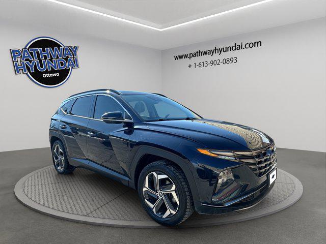 At Pathway Hyundai, Orleans, discover the allure of the 2022 Hyundai Tucson Hybrid Luxury, a sophisticated blend of power and efficiency. This used vehicle features an Intercooled Turbo Gas/Electric I-4 1.6 L/98 engine, complemented by an automatic transmission and robust AWD capability, ensuring reliable performance in diverse conditions. Wrapped in an eye-catching Deep Sea Blue exterior with Light Grey Leather Seat Trim, it offers both style and comfort.High-value features include a Panoramic Roof, perfect for embracing the natural light and scenic views of Canada. The Heated Front Seats, Heated Rear Seats, and a Heated Steering Wheel enhance comfort during chilly mornings, while the Power Liftgate offers convenient access to the cargo area. Safety is at the forefront with Lane Departure Warning and a Blind Spot Monitor, alongside Adaptive Cruise Control for those long journeys. For ultimate convenience, enjoy the benefits of Remote Engine Start and a Back-Up Camera.Each journey is enhanced by a Premium Sound System and Satellite Radio, ensuring your favourites are always on standby. The SUV sits proudly on Aluminum Wheels, supporting its sleek design and agile handling.With 52,478 kkilometreson the odometer, this Hyundai Tucson Hybrid represents a blend of luxury and practicality. Explore more at Pathway Hyundai.Stock # R61538A.